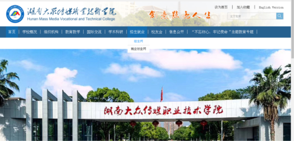 1、进入湖南大众传媒职业技术学院官网,找到招生就业,进入招生网;